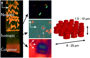 While the columnar liquid crystalline phase in suspensions of plate-like colloids is by now well-established, little is known about the pathway leading to the formation of this highly ordered, self-assembled structure. Here, we present direct observations of the morphology and structure of micrometer-sized droplets of the columnar phase formed in the nematic phase in suspensions of colloidal gibbsite plates. From polarized light microscopy and optical Bragg reflection measurements we deduce that these droplets consist of stacks of platelets in a hexagonal arrangement, forming a disk-shaped droplet. We discuss the relation of this droplet structure to the nucleation pathway of the columnar phase and to the anisotropic nematic–columnar interfacial tension.